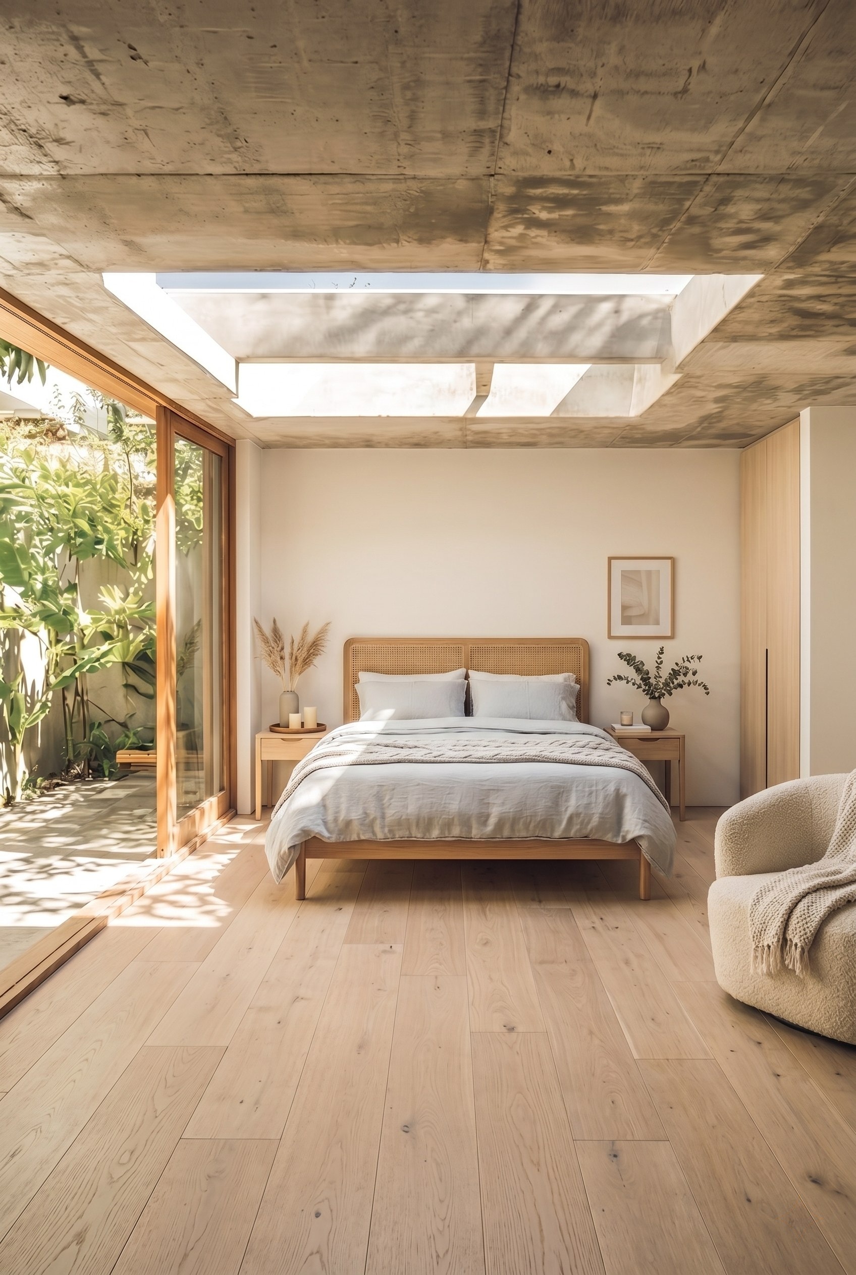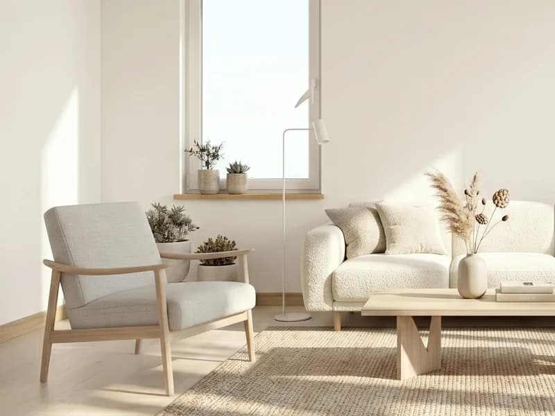 Ultra-low furniture, matte artisan ceramics and a single dry branch in stoneware. Absolute visual silence: Japanese-Scandinavian fusion at its finest.